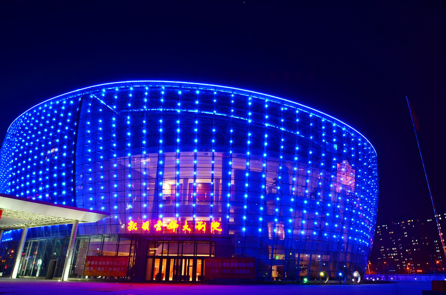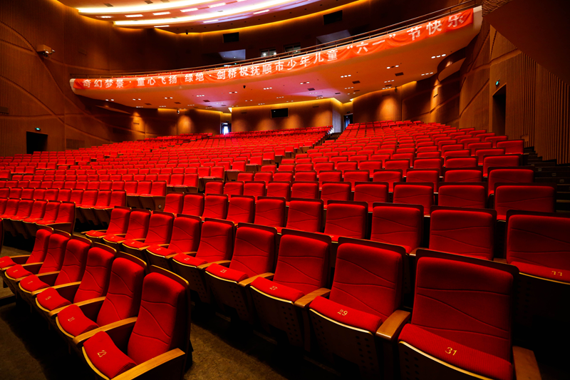 雷锋大剧院占地3.27公顷,总建筑面积19600平米,剧院外围护结构为玻璃幕墙结构,设计为一座集电影、戏剧演出、会议接待功能的综合建筑,地上五层,地下一层,主剧场1222个坐席,楼上335,楼下887.地下3个小影厅,51座、52座、90座(暂未使用),一个贵宾室,二个会议室。一层3个大化妆间,4个小化妆间。剧院舞台采用4块独立机械升降台,台口宽15.1米,高8.5米,进深22米,有升降乐池。台口左右设有彩色LED宣传屏。51道灯杆及景杆,6道边沿幕,大幕,二幕,天幕。100平米LED显示屏。灯光:两台MA2数字控制台,一主一备,一台模拟控制台,面光48只,耳光48只,吊笼96只,电脑摇头60台,LED灯80只,常规灯75只。音响为英国声艺64路数字调音台和声艺模拟48路调音台一主一备,48只美国JBL主音箱。能满足各类演出及会议要求,剧场内有6部客梯1部货梯,96个监控摄像头,12个消防摄像头。1200平共享大厅设有广播及场内电视转播系统,剧场外191个停车位。有室外广场、雨棚、绿化、亮化等设施。