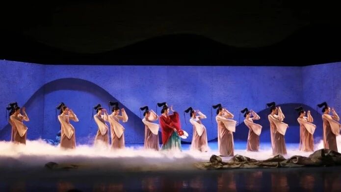 作品以“初见、情愫、别离、归神”四章展开,在6分钟的凝练表达中,21位舞者身着复原魏晋服饰,以行云流水的群舞与细腻独舞,再现洛神与曹植的千年绝恋,实现了传统文化与当代艺术的完美契合。作品已于12月17日在无锡市人民大会堂亮相。