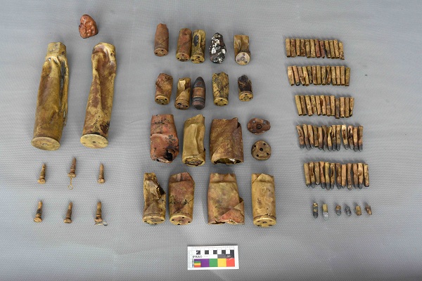 本次调查提取各类遗物标本500余件,种类丰富。包括锅炉、斜桁、舷窗、舱门、外壳列板、肋骨、铁甲堡衬木等舰体结构;毛瑟步枪子弹、转轮手枪子弹、37毫米炮弹、47毫米炮弹等武器装备;以及锉刀、扳手、旋柄、冲子等修理工具;鞋子、皮带、烟袋等个人物品。
